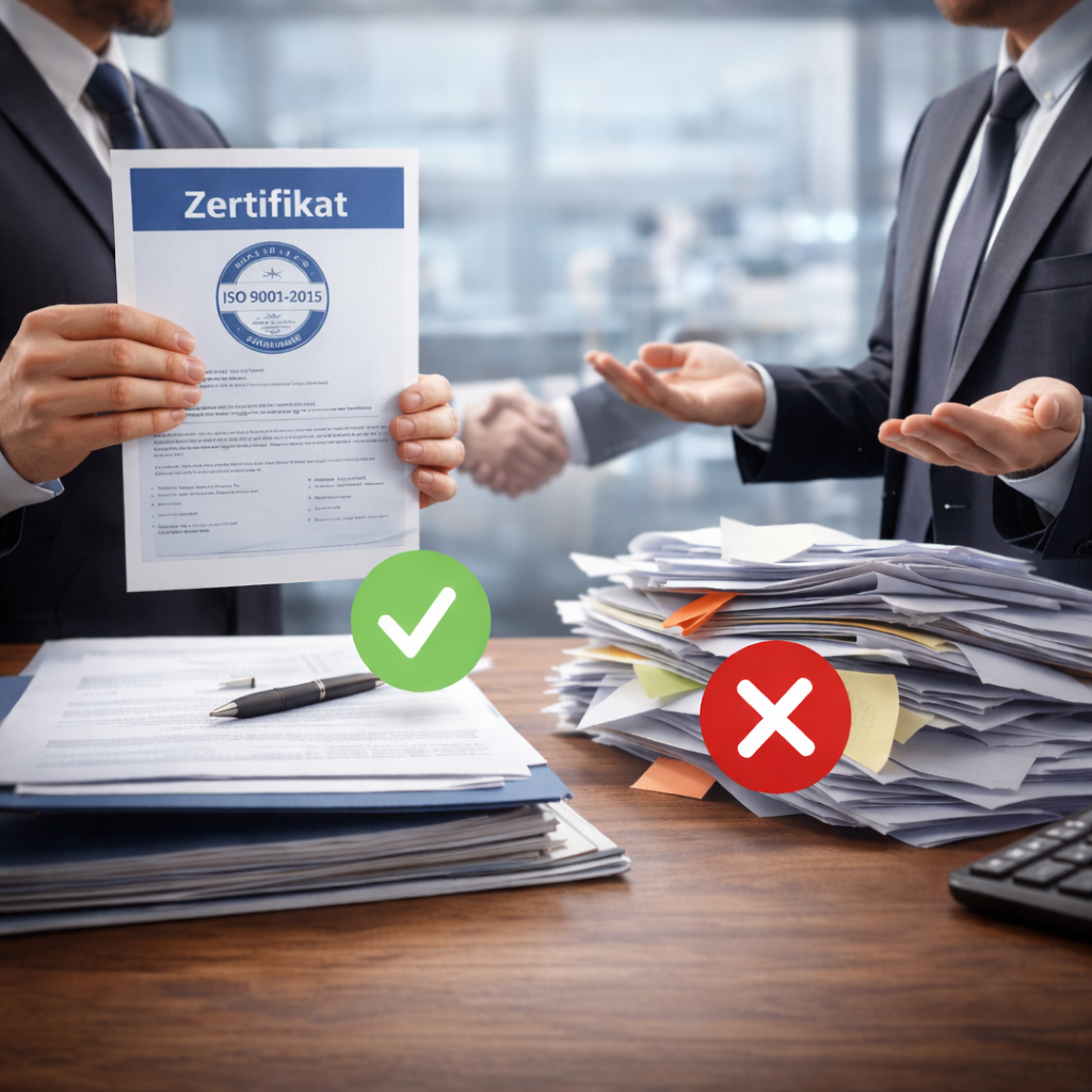 Gerade in industriell geprägten Regionen und exportorientierten Märkten wird eine Zertifizierung häufig vorausgesetzt, um überhaupt berücksichtigt zu werden.